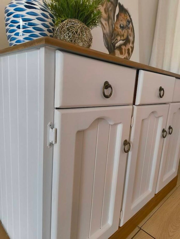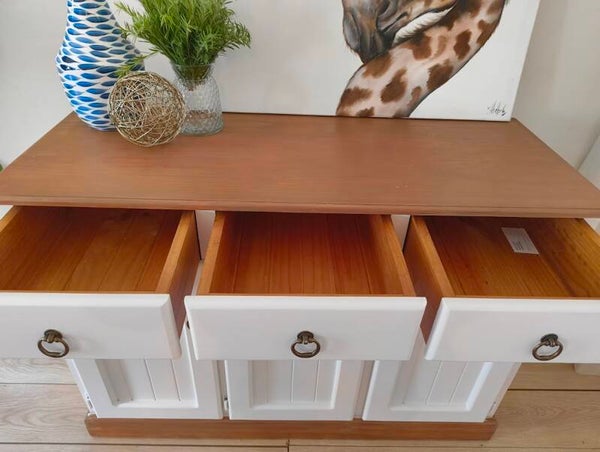 Refinished Buffet / Sideboard – Two-Tone Timber & White Linen